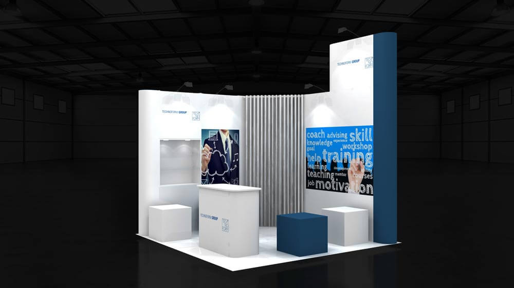 Discover ready-made exhibition stands — choose your size and request a quote instantly.