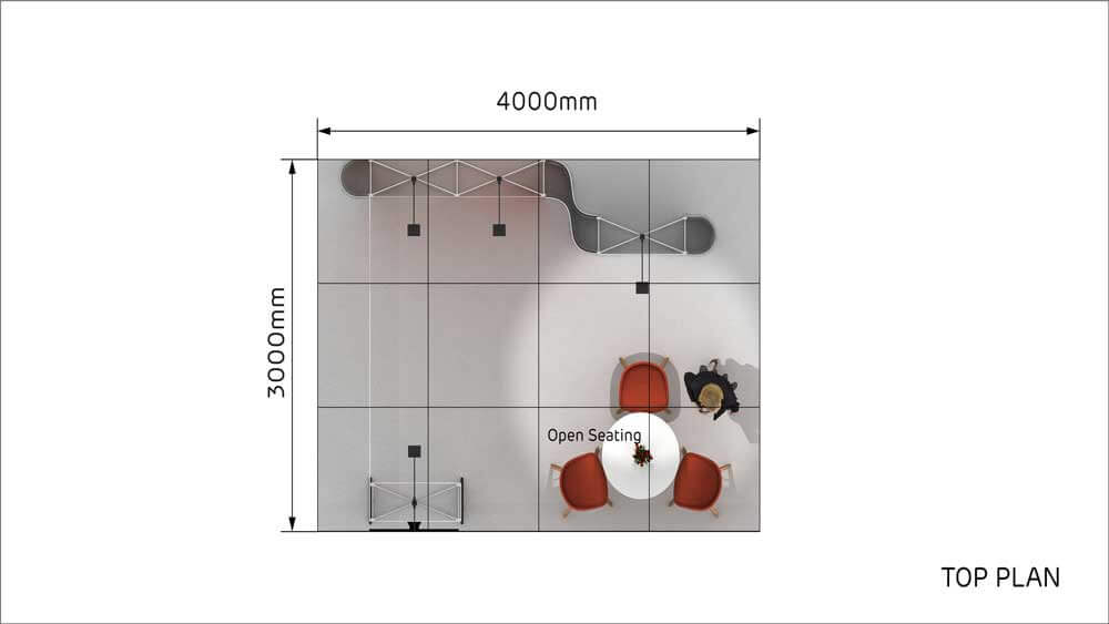A compact and stylish 3×4 booth designed for quick setup and strong brand visibility.