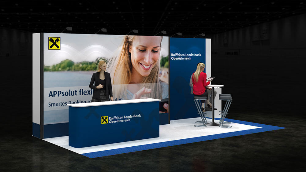Includes backwall graphics, lighting, and a front counter — ideal for exhibitions, retail events, and promotional activations.